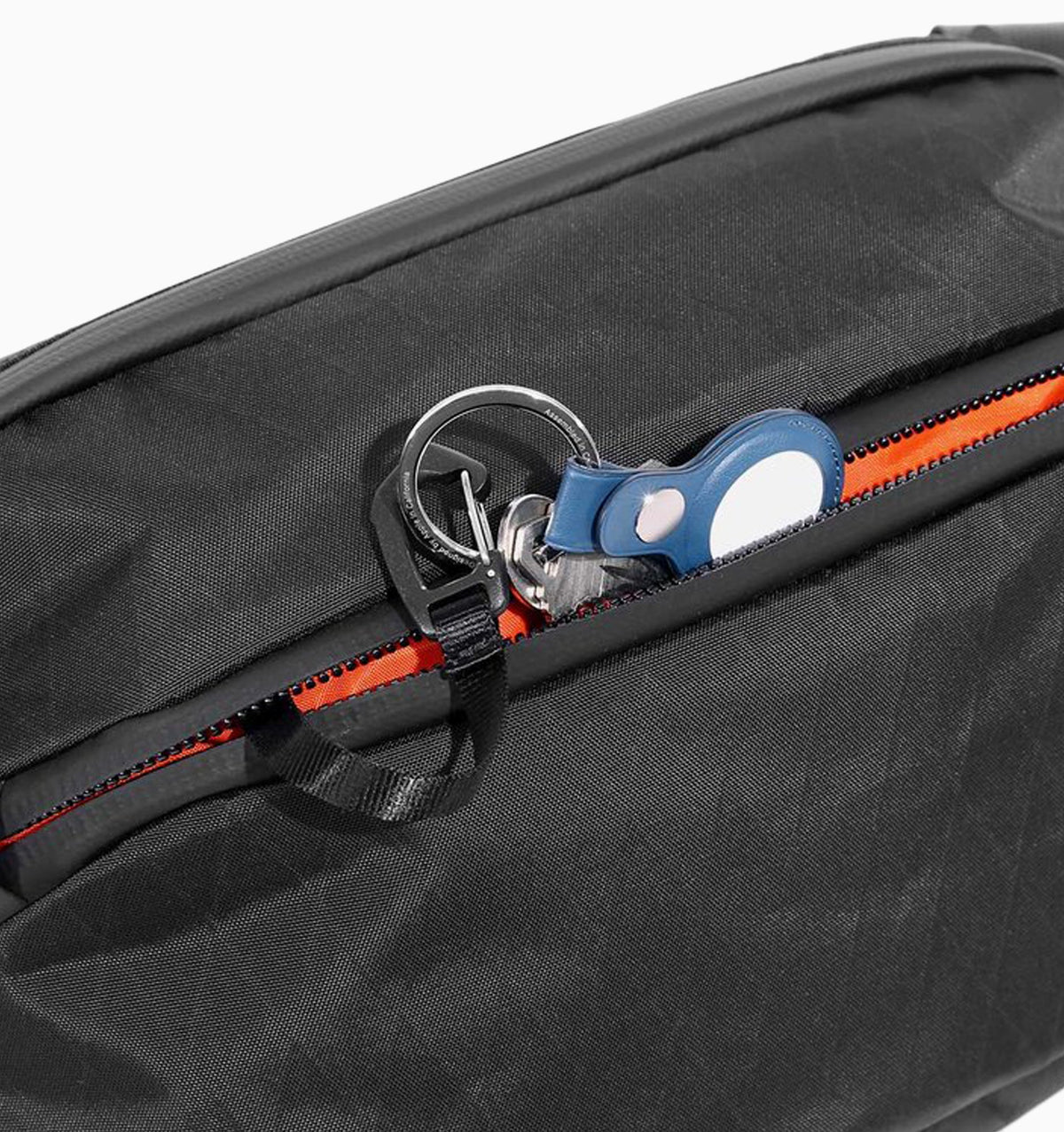 - Quick-access front pocket with keychain