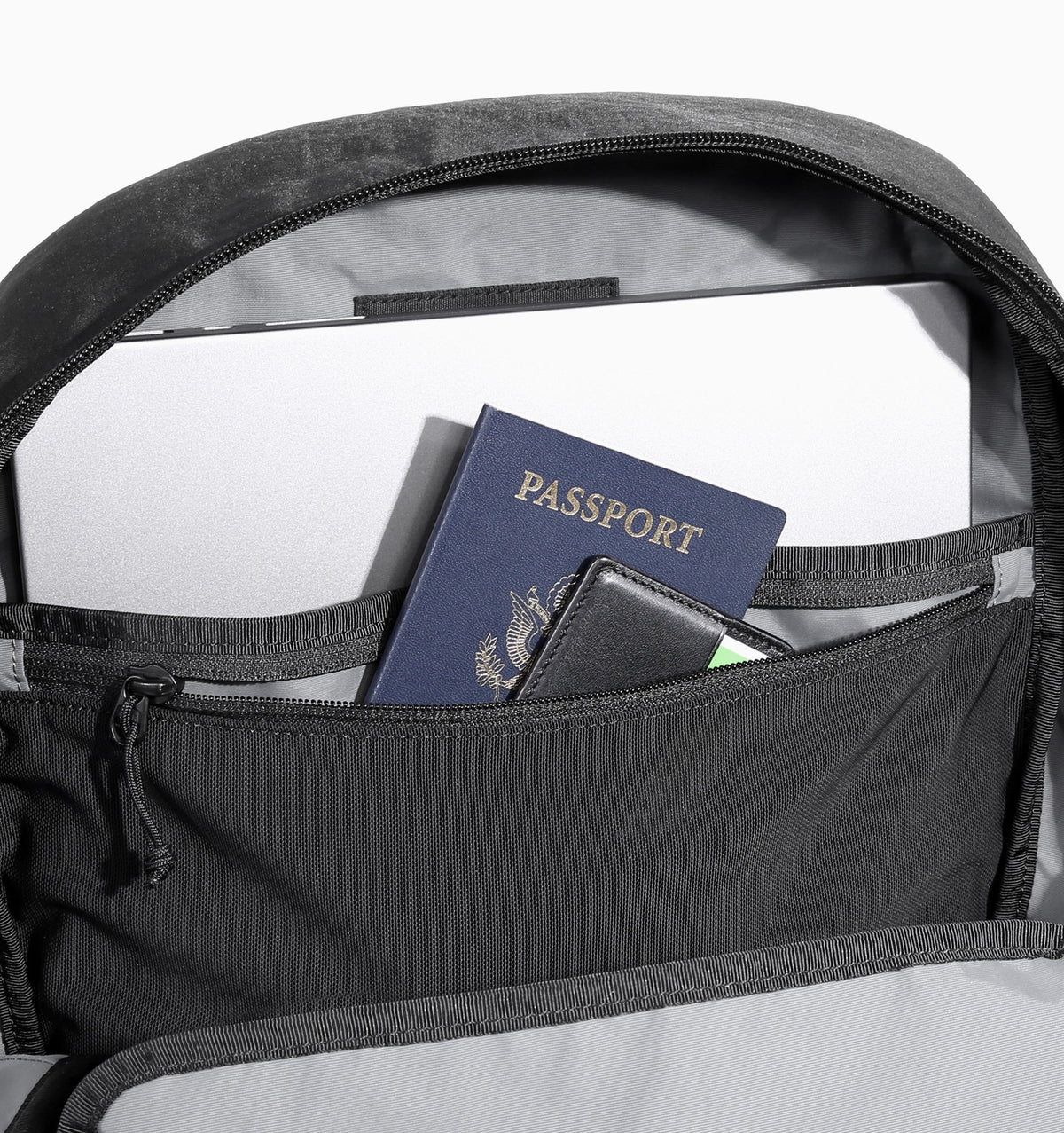 • Quick-access top pocket for small items