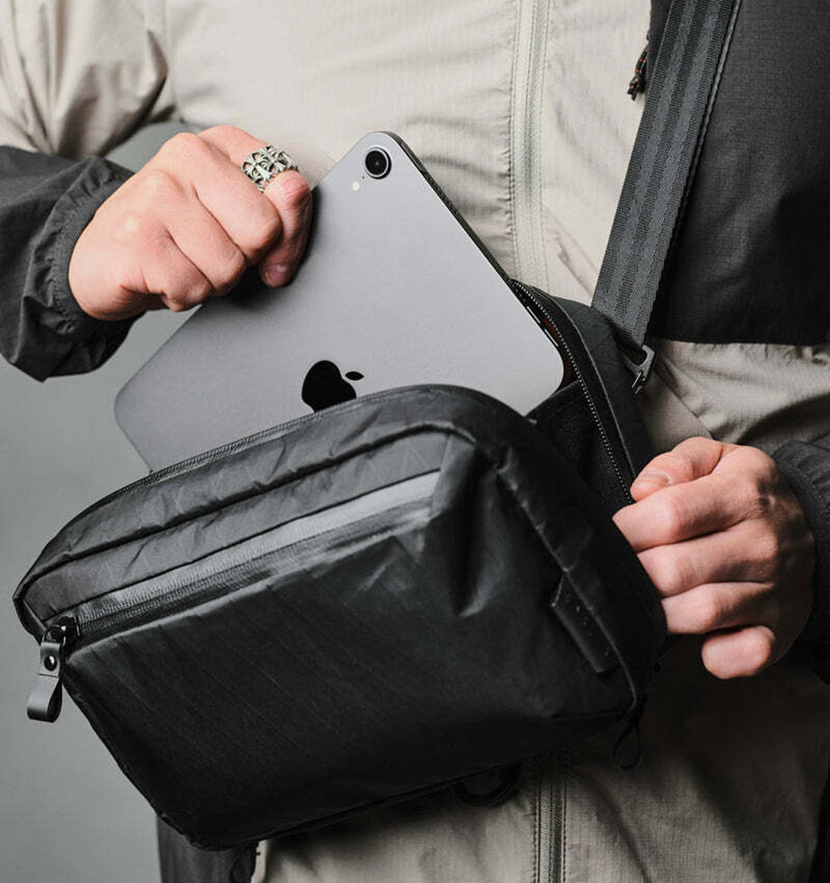 Designed to keep you clutter-free. Transforms into a sling to keep you hands-free on the go.