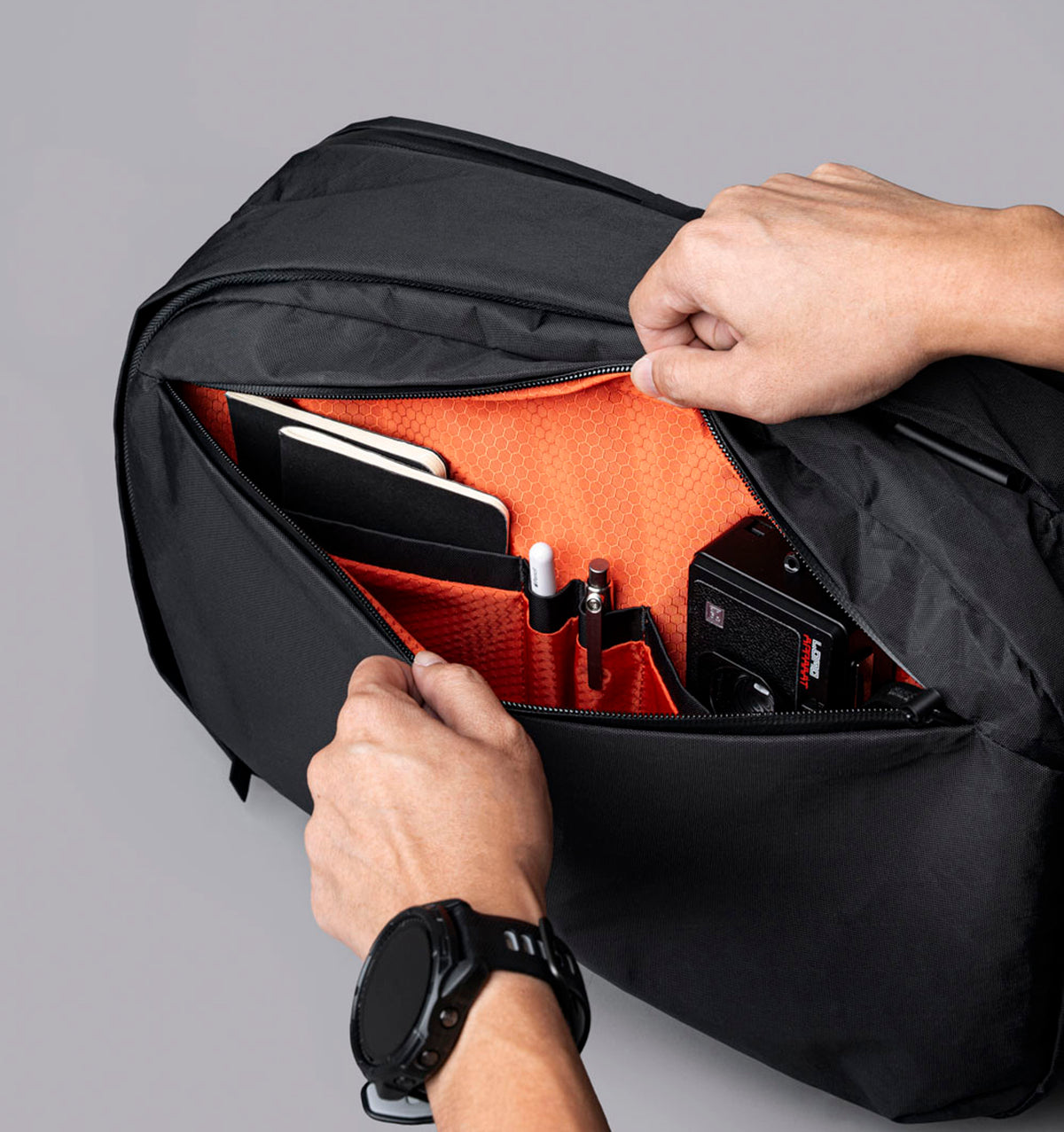 - Smart Storage - 1 bag, 3 zones: laptop storage in back, daily gear in the middle, and must-have essentials in front. Each with separate zip access.