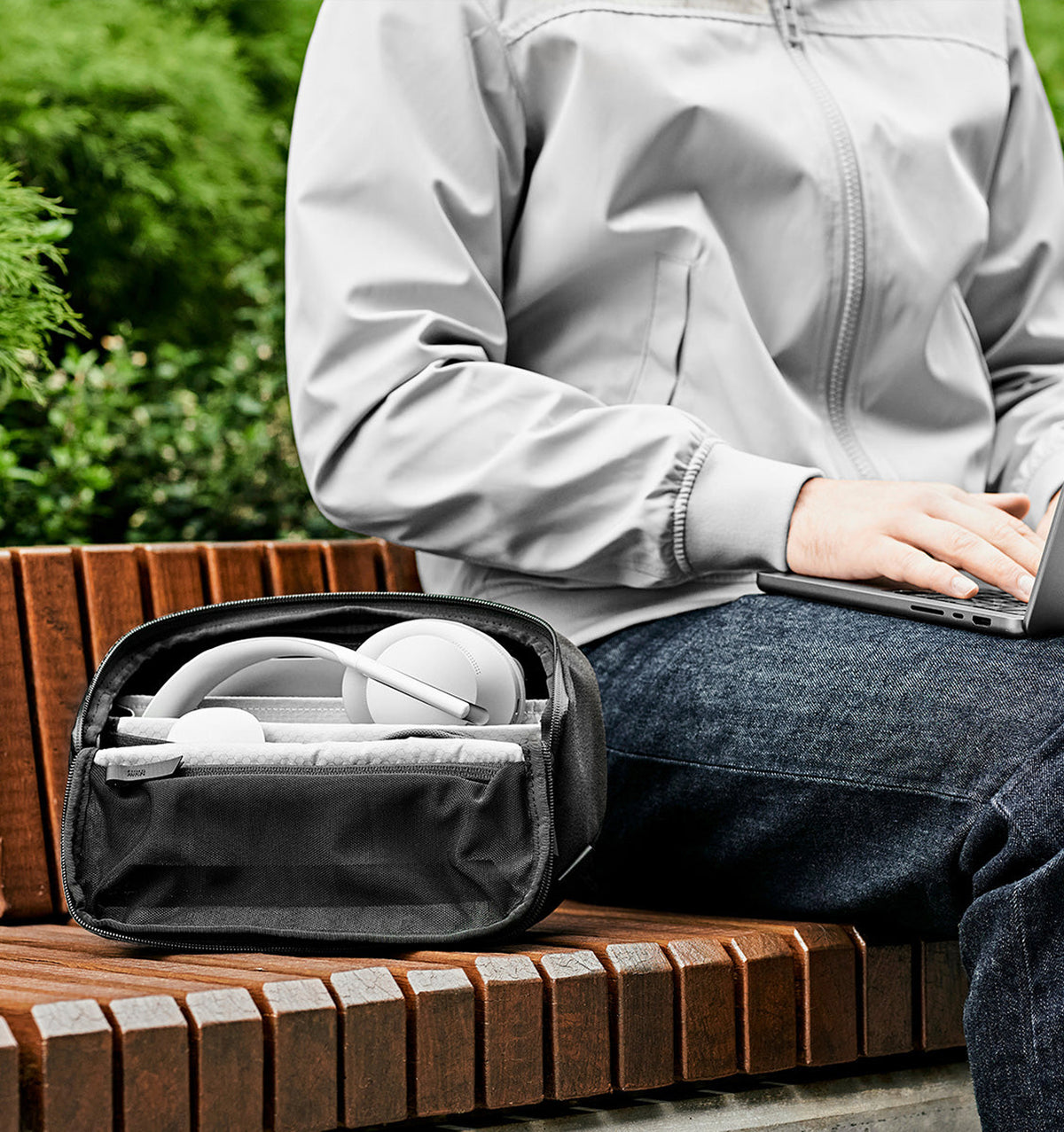 • Tech Pouch - Designed with expertise, this tech pouch offers ample internal storage and dedicated zones for all your essentials. From your iPad mini or small tablet to your mouse, headphones, cables, chargers, and more, everything has its place.