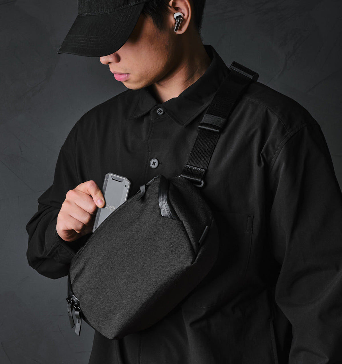 A revolutionary all-in-one solution designed to streamline your daily tech essentials and keep you organised on the go. It’s a triple threat: tech pouch, desk caddy, and sling bag all in one.