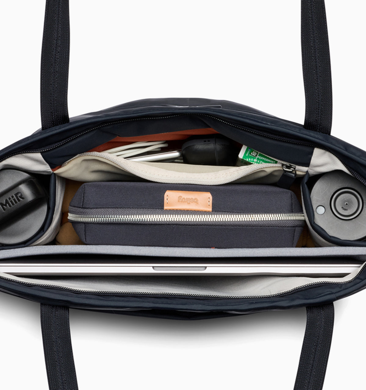 • Disappearing zipper - Tote zippers can often obstruct your access, so we designed one that all but disappears when it’s open. To give you full, wide-mouth access to what’s inside.
