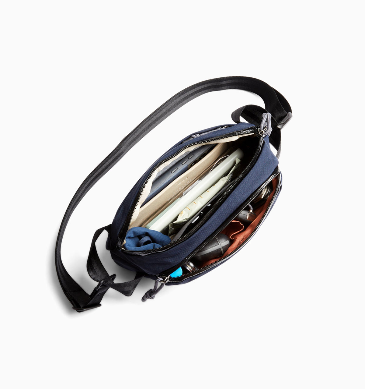 “We designed the layout and access of this sling around the objects you carry every day – phone, keys, earbuds – to keep them organised and handy, but out of the way.” Aaron, Bellroy designer
