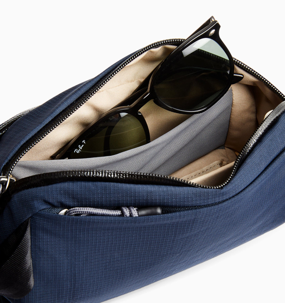 Inspired by Bellroy Venture Ready Pack, the front pocket of this sling has an internal divider that helps keep small gear organised and accessible.