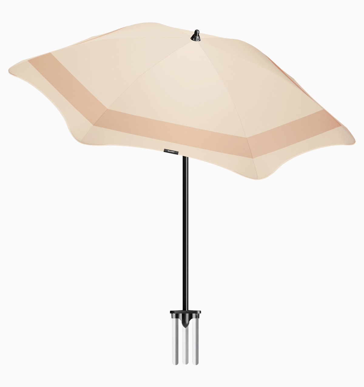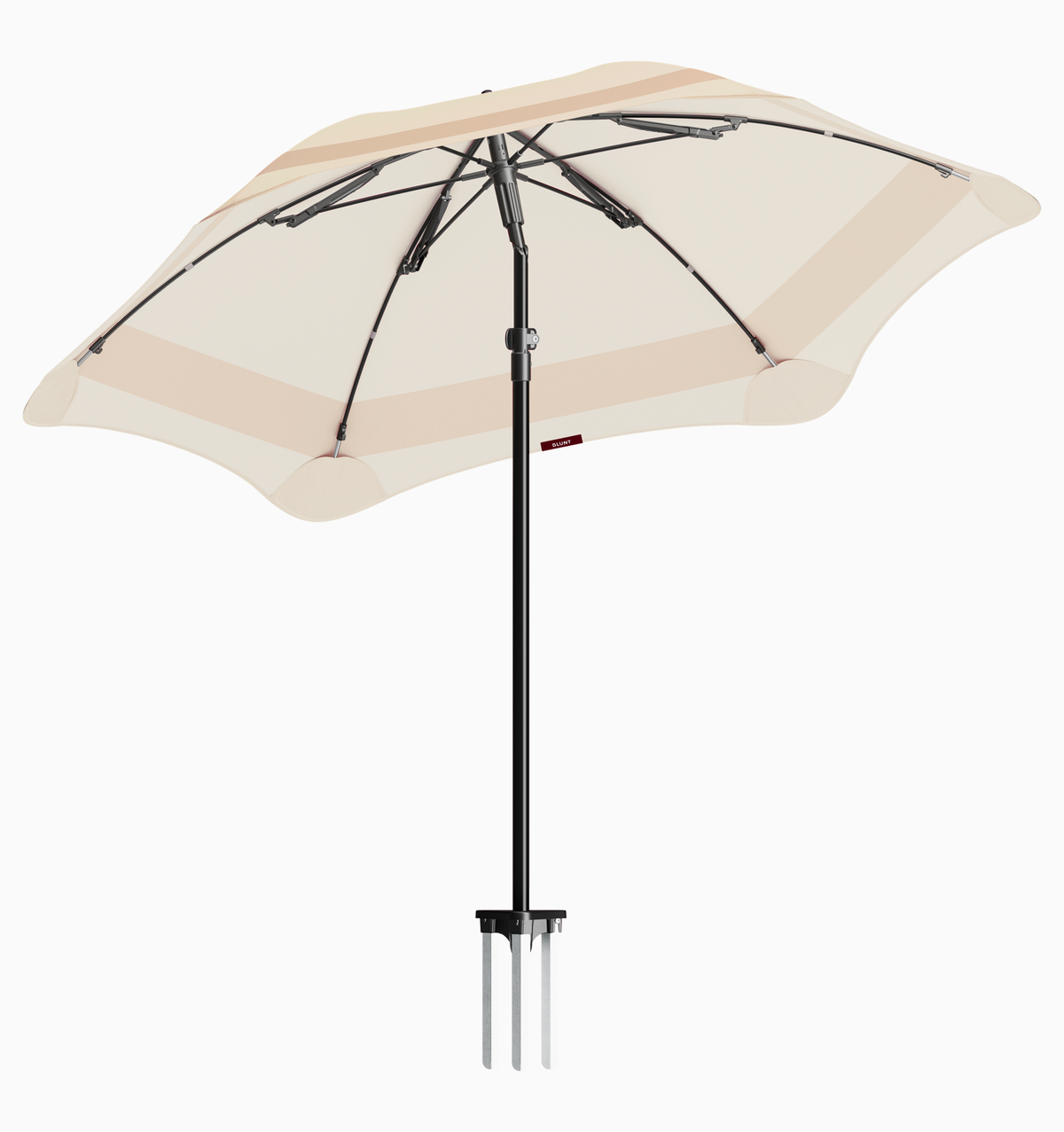 • The anchor is defined by BLUNT’s pioneering design, using three robust aluminium fins that hold your umbrella secure, upright and grounded. The result is unmatched stability and shade that lasts from sunrise to sunset.