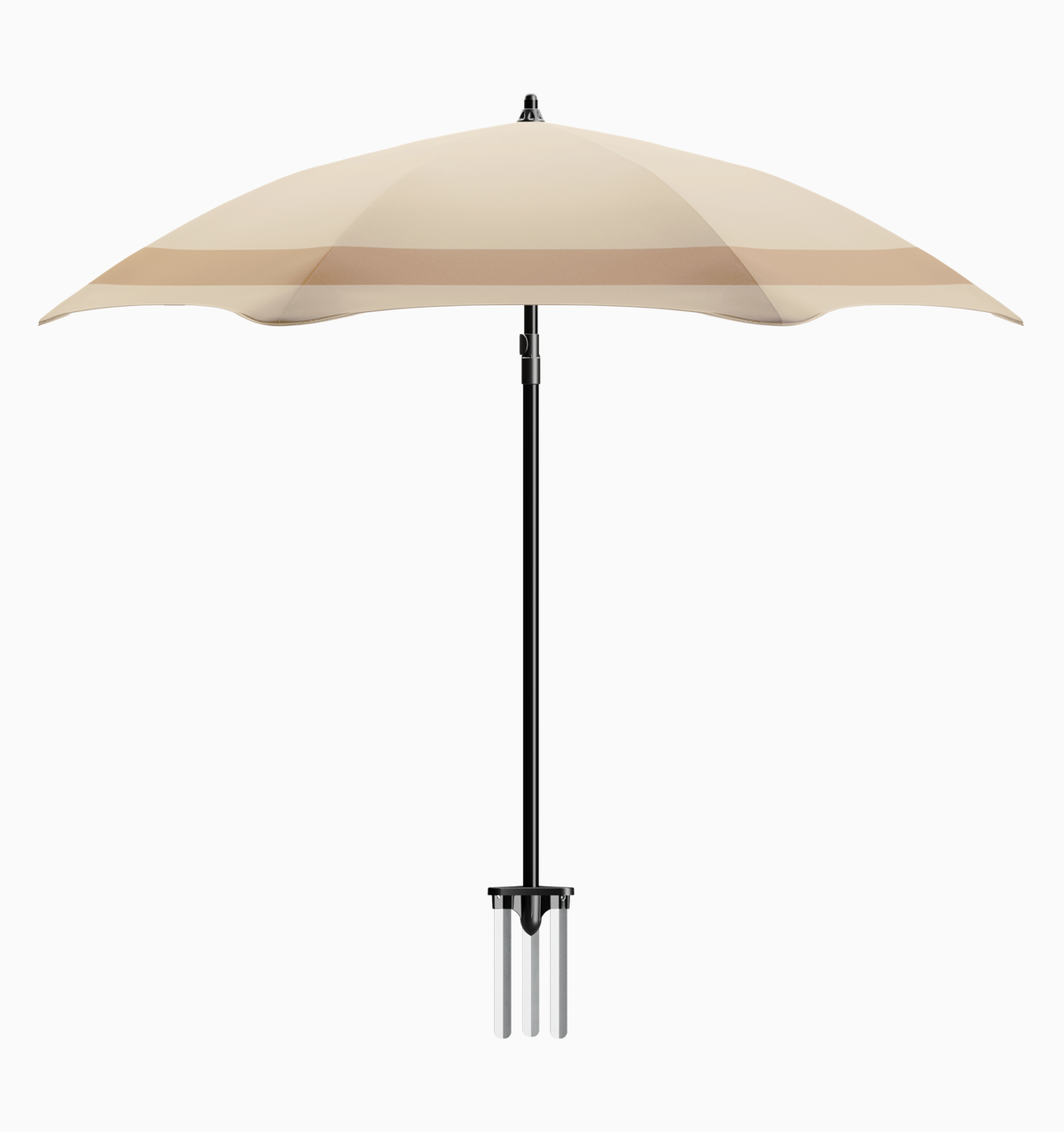 • The shaft is the central point of connection within the umbrella framework, bringing all components together. Featuring a two-piece anodised system for corrosion resistance, it includes a bespoke clamp for height adjustment and a 25° tilt for all-day shade.