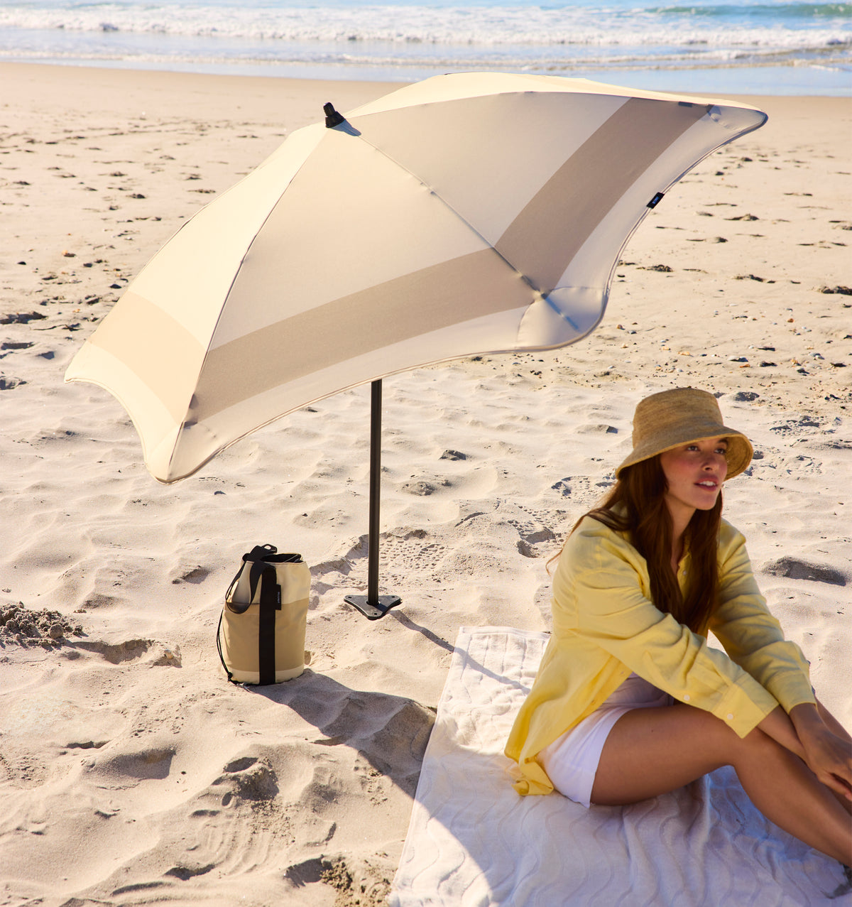 Designed for long, effortless days by the water, the BLUNT Beach Umbrella offers 50+ UPF protection, sustainable recycled fabric and their signature Sand Anchor Kit.