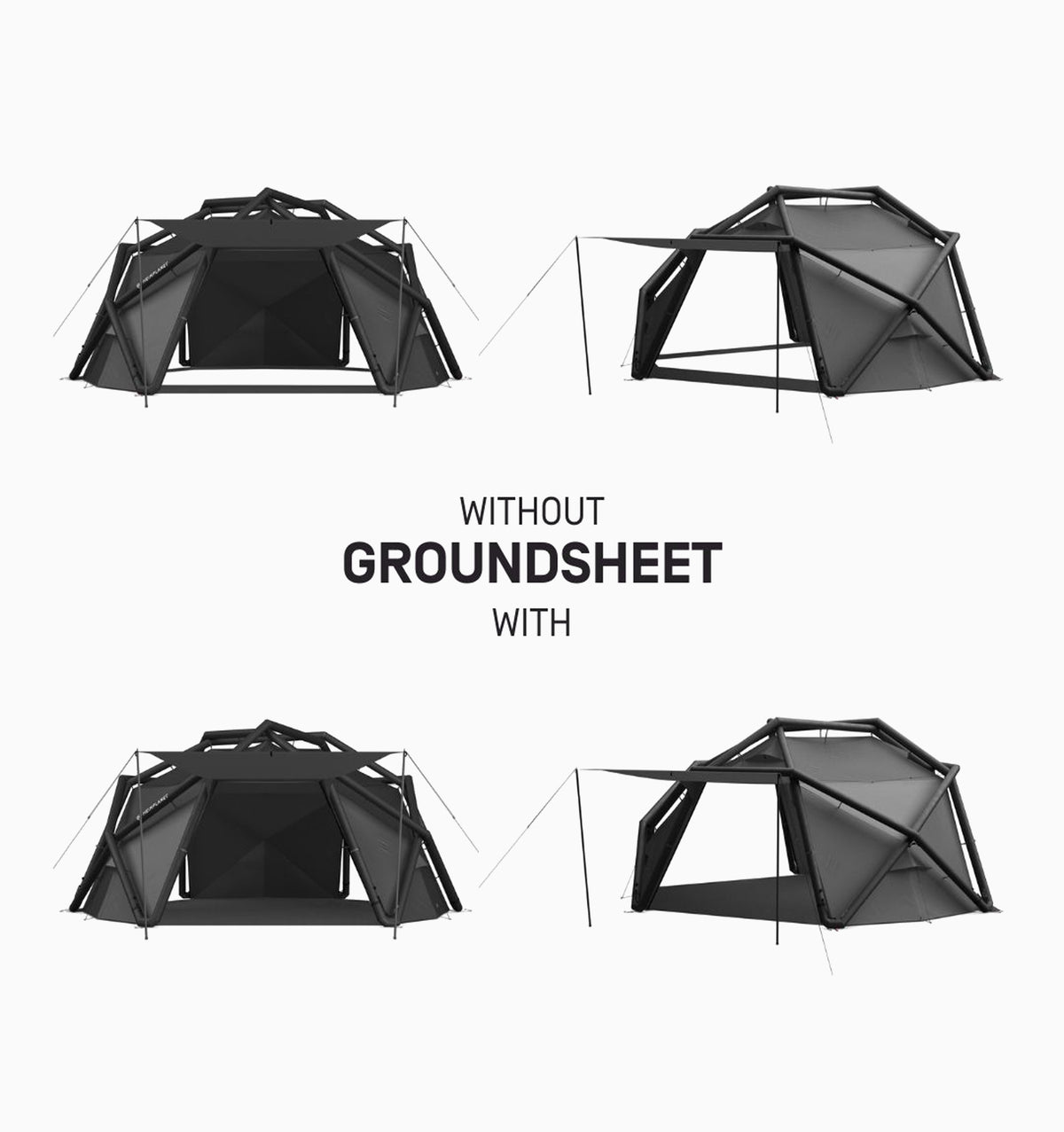 • The groundsheet is an additional item and can be easily inserted and removed, allowing you to use the tent with or without the groundsheet as desired. The groundsheet is an optional item and not included with the tent.