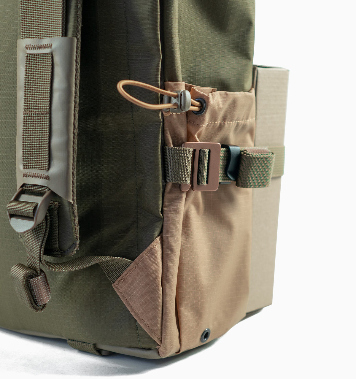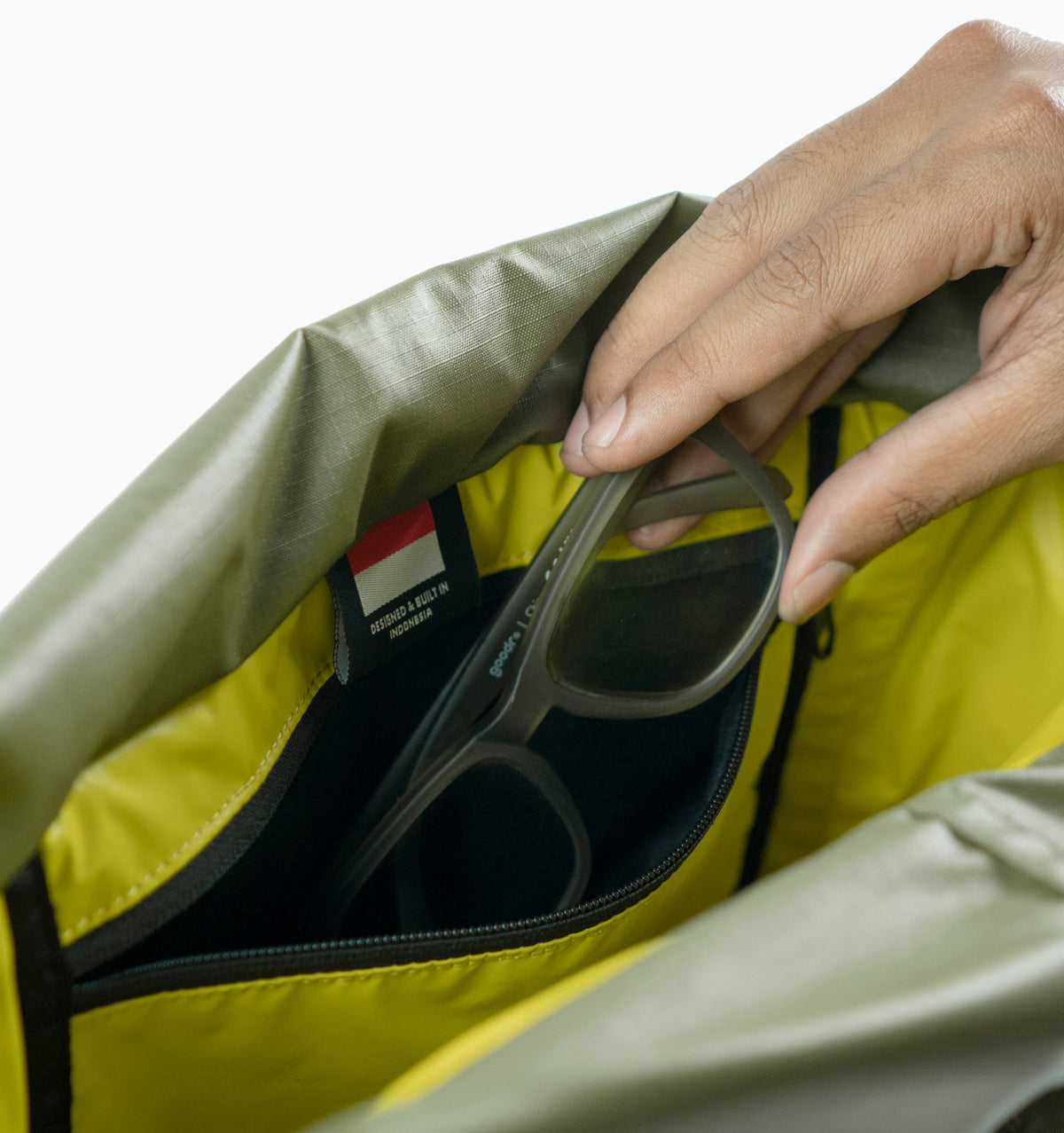 Water resistant 210D ripstop nylon fabric • 70D Nylon liner in white for improved browsing visibility • Water-repellent zippers • Woojin® acetal (POM) parts • Trimmers® metal hooks • Padded construction • Floating lining construction • Mil-spec polyester webbings • Proudly made in Indonesia, with limited lifetime warranty