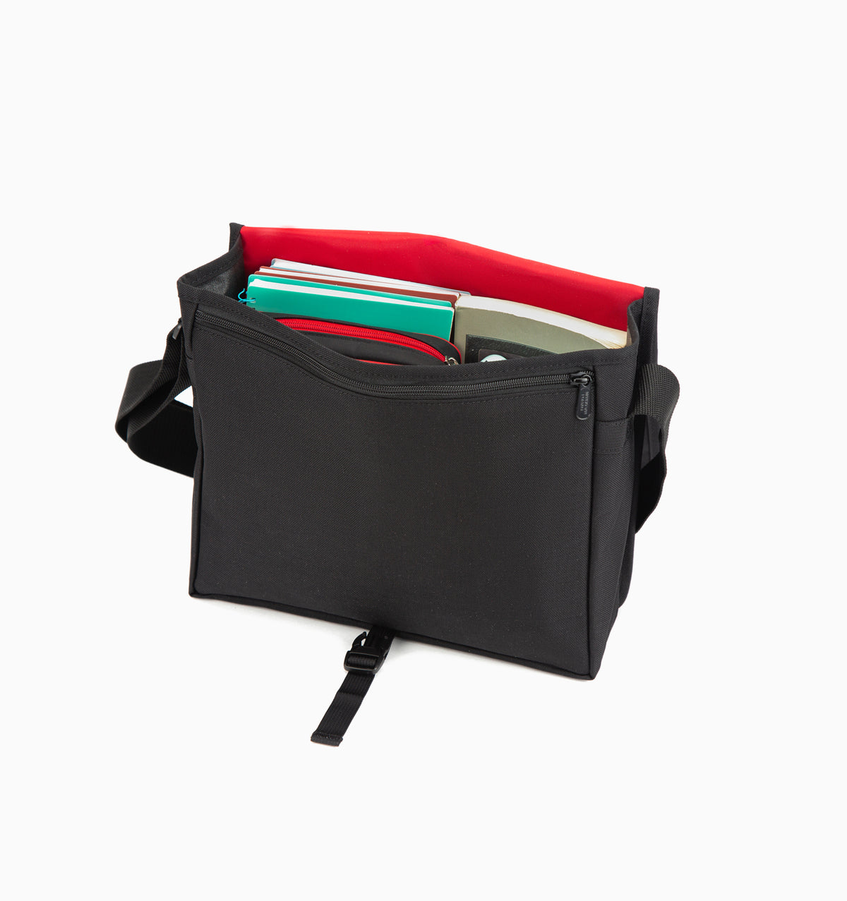 • One zippered compartment underneath the flap