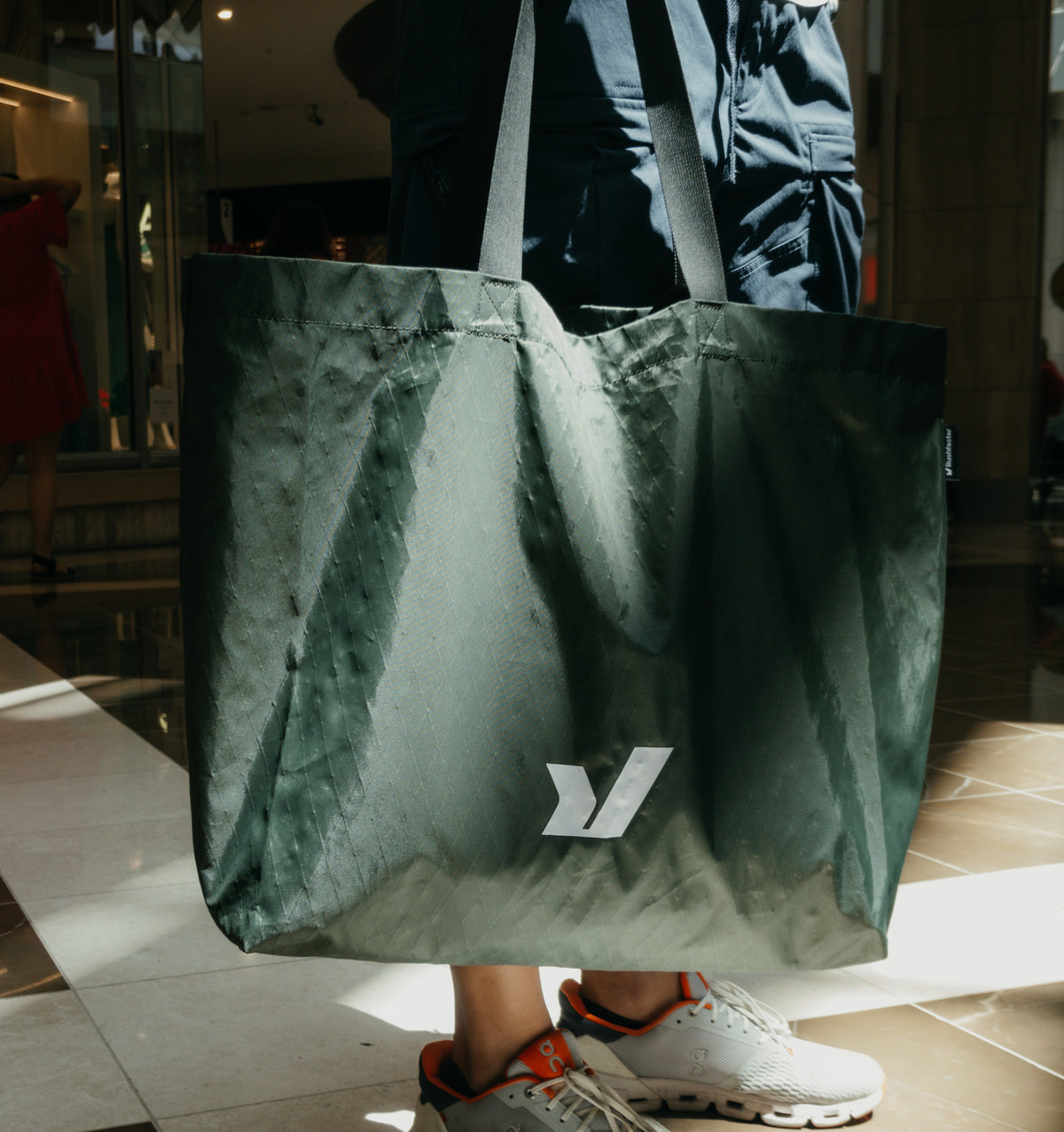 Get 75% off this tote with orders $400+. Heavy-duty X-Pac tote, perfect for shopping