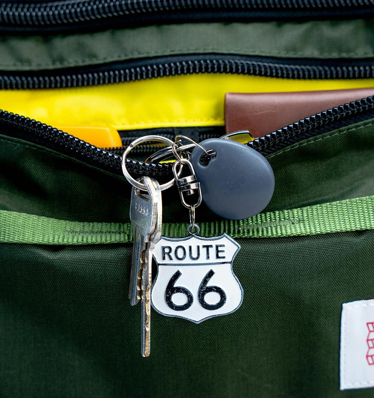 - Heavy-duty YKK zippers with security loop on main compartment